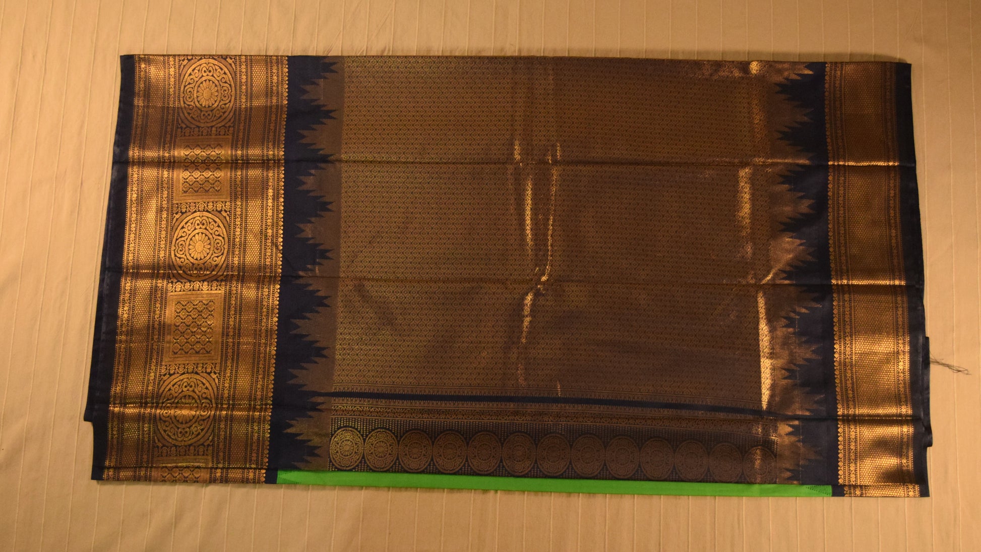 Parrot Green and Dark Blue Semi Gadwal silk saree