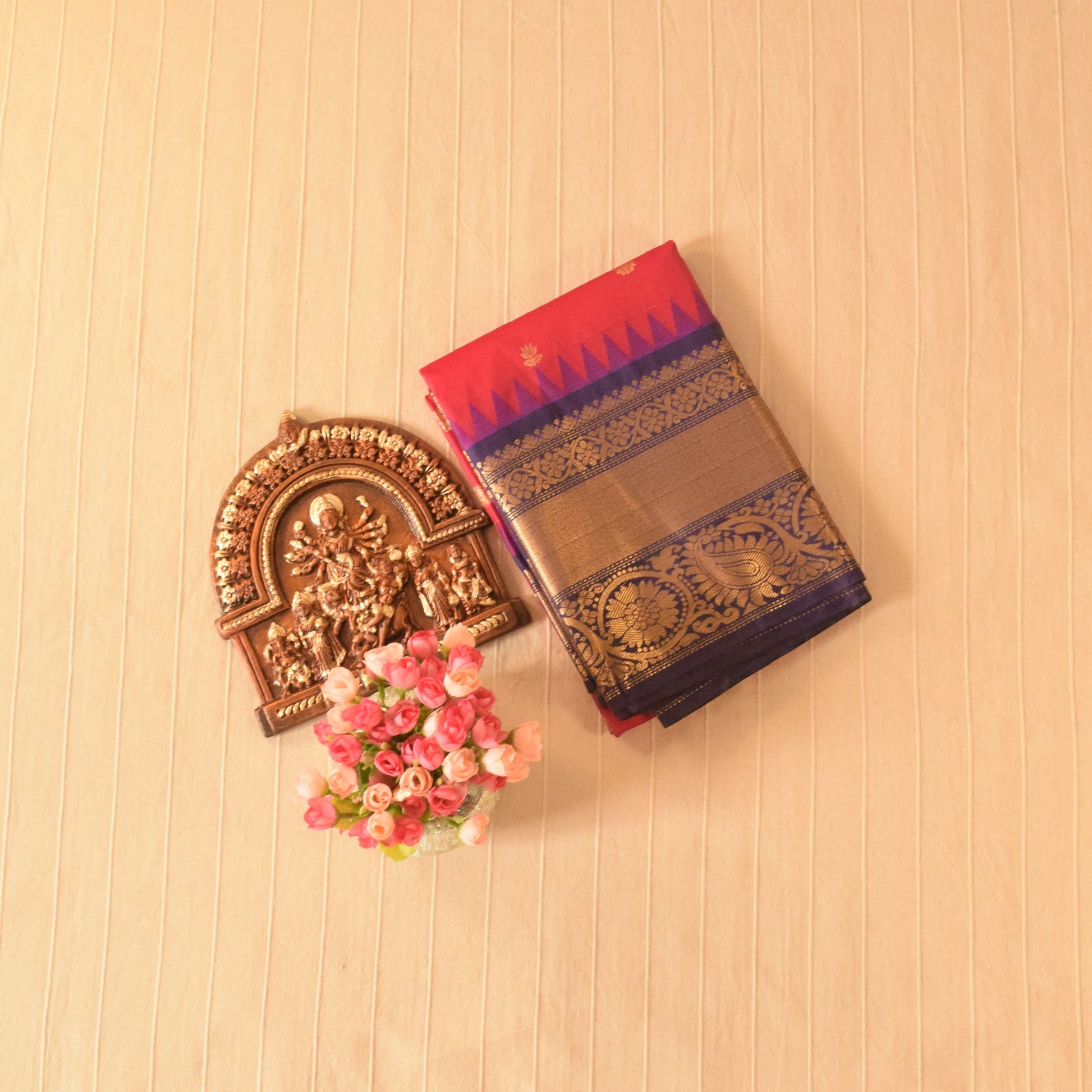 Rani Pink and Navy Blue Semi Gadwal silk saree