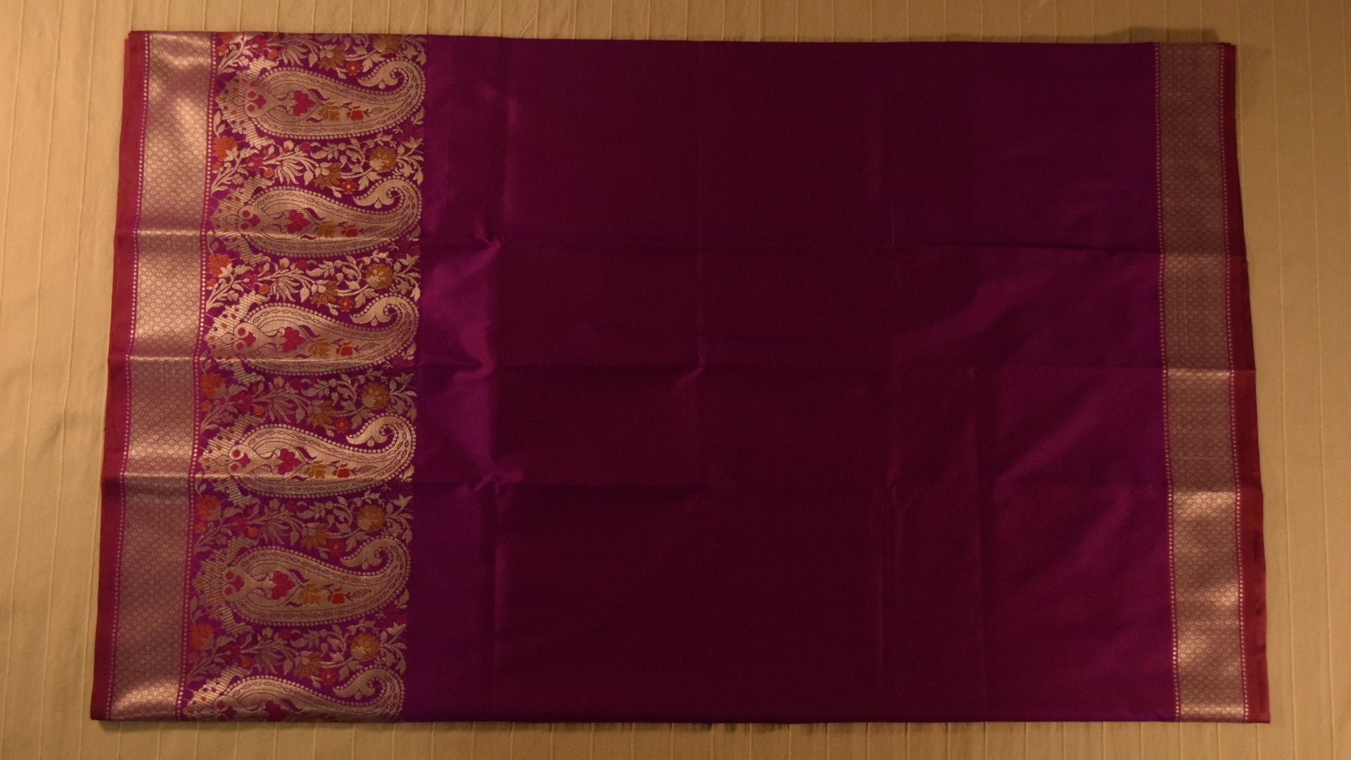 Color: Luminous magenta with heavily woven pallu and border