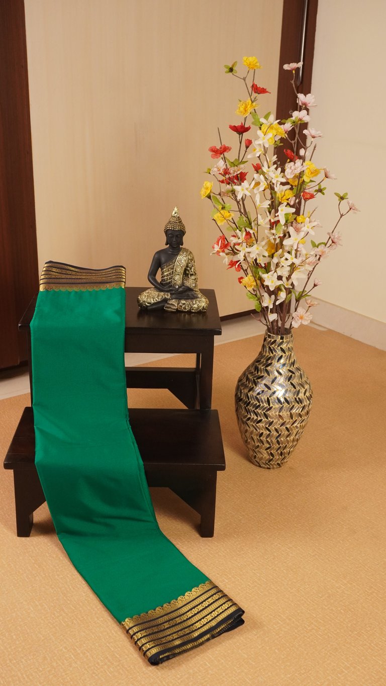 Color: Emerald green with navy blue and classic horizontal stripes of gold zari border