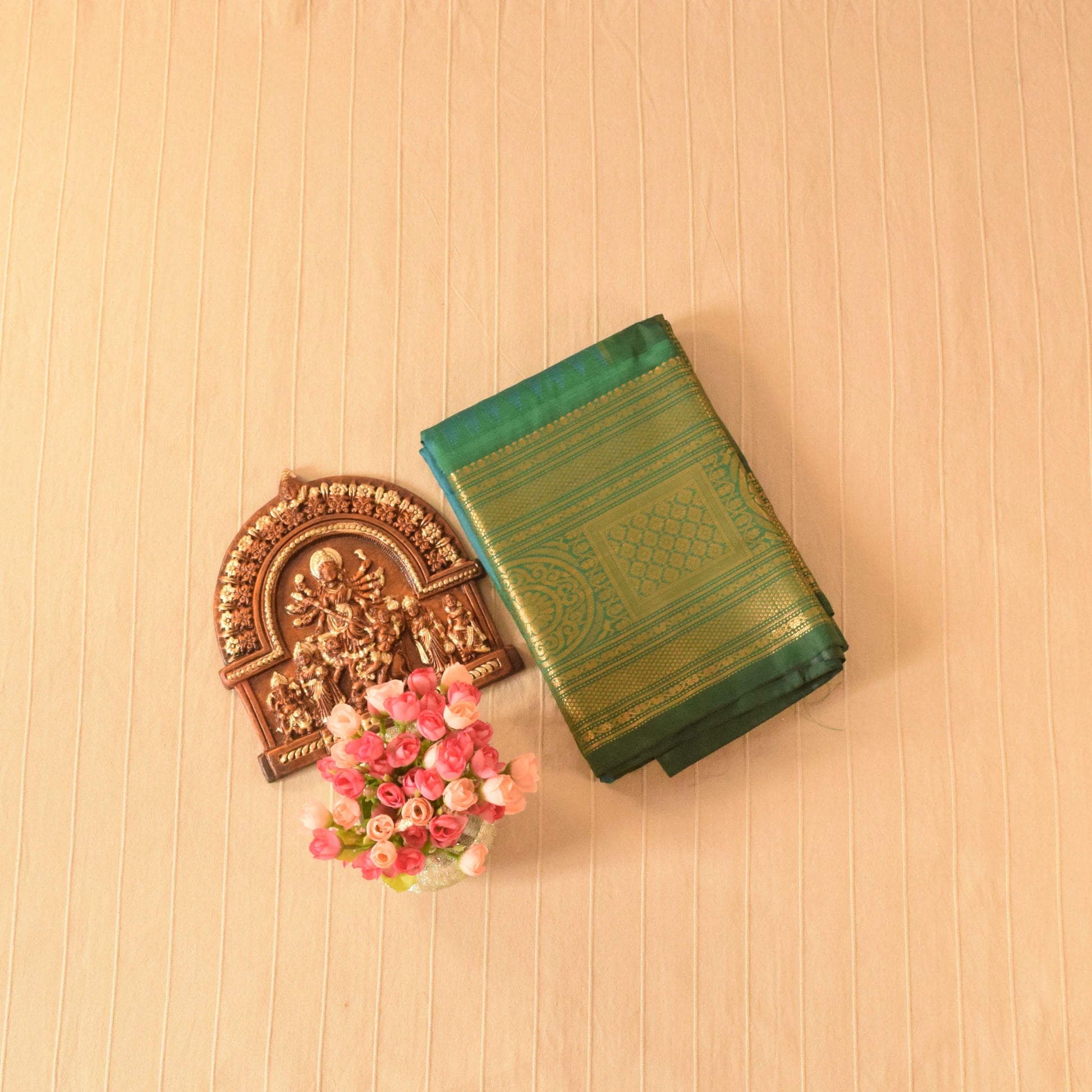 Aqua Blue and Olive Green Semi Gadwal silk saree