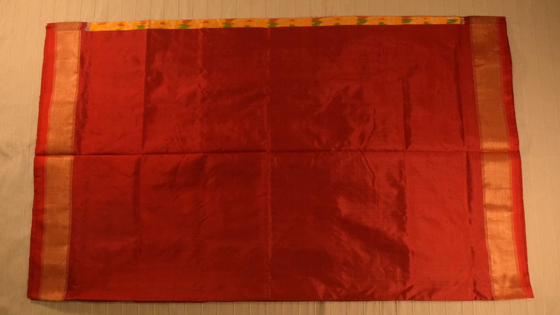 Vibrant Yellow and red Pure handloom Pochampally Ikat Silk saree